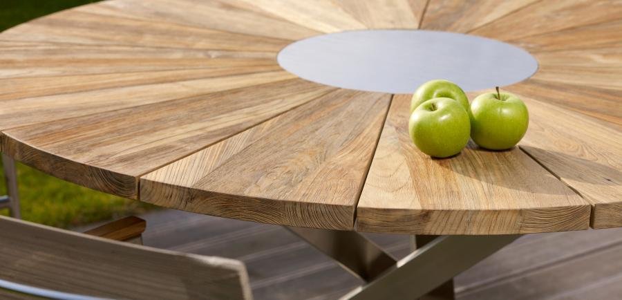 Teakhouten tuinmeubelen zorgen voor een prachtige uitstraling. Bovendien is het sterk materiaal en vraagt het weinig onderhoud. Als u uw teakmeubelen buiten laat staan, krijgt het in de loop der jaren een ander uiterlijk. U kunt uw teakhouten tafels eventueel ook behandelen met olie of lak. Daarnaast kunt u teak met groene zeep reinigen.