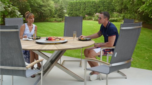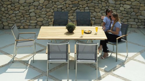 Stel uw tuinset samen, afhankelijk van uw behoeften. Of u nu kiest voor een kleine houten tafel of een grote RVS tafel, de Setax stapelstoel is geschikt voor elke gelegenheid.U kunt u eenvoudig de stoelen op elkaar stapelen of u laat ze natuurlijk om de tafel staan.